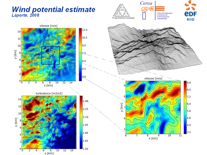 Code_Saturne has been applied to the estimation of wind energy potential in complex terrain.