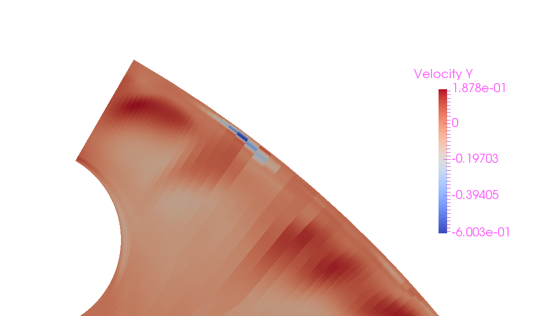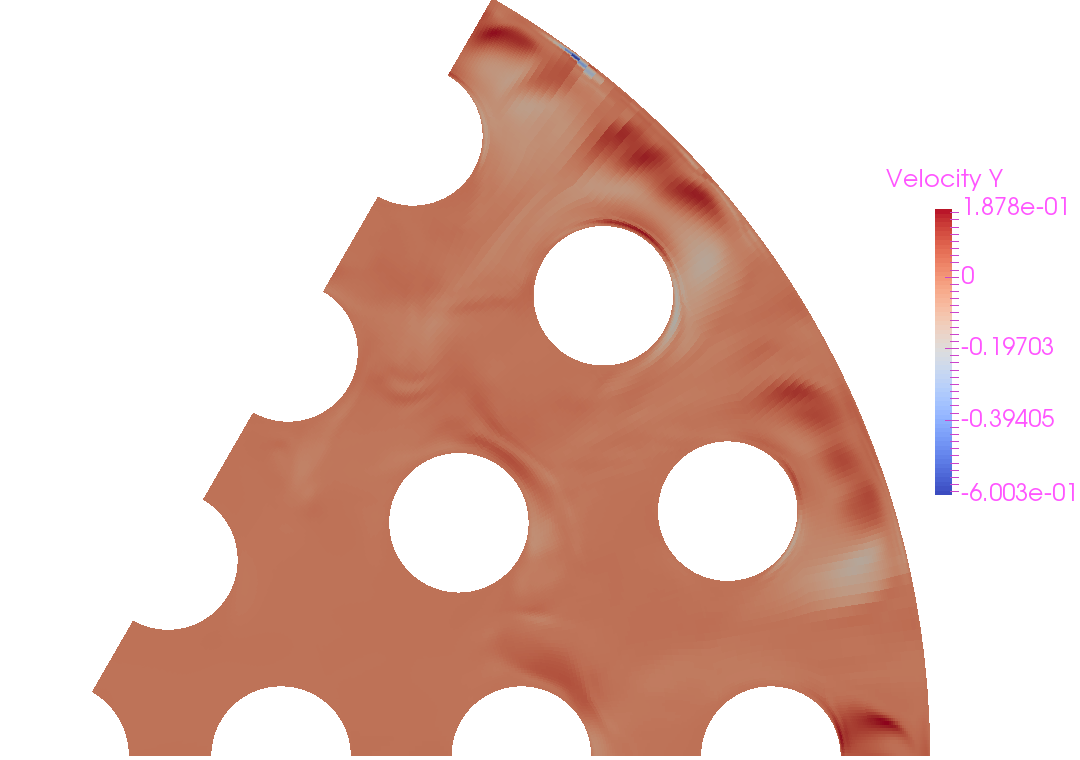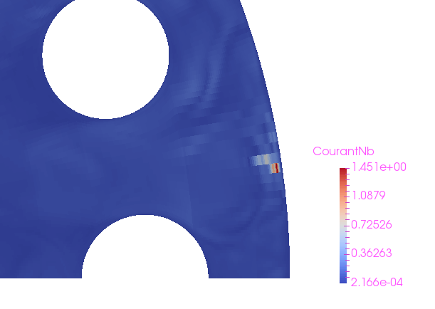 I am trying to simulate buoyant flow in an enclosed rod bundle, but the simulation is not converging. Looking at the results it appears there are a couple of cells near the domain boundary where I have non-physical velocities. I have tried switching on EXTRAG for pressure, but the problem persists. Furthermore, I tried using least squares for gradient reconstruction but again same issue occurs. Checking the mesh quality criteria shows no obvious mesh quality issues within this region. (I noted the aspect ratio is rather large, tried improving it but to no avail).