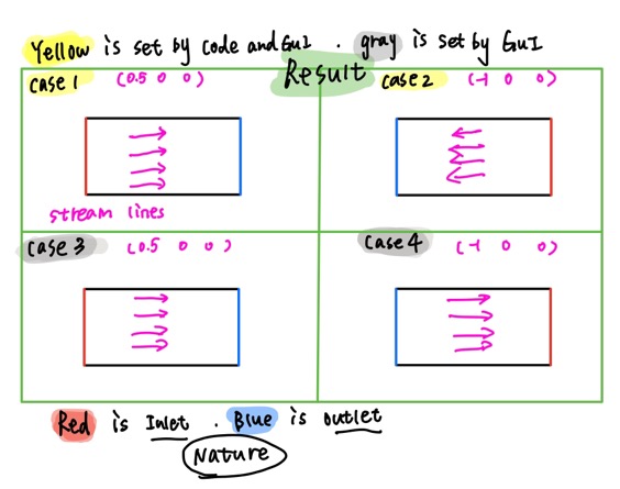 in picture3, I show the result of four cases. in my opinion, the result of case 2 should same as case4. but the direction of the stream lines isn't the same.