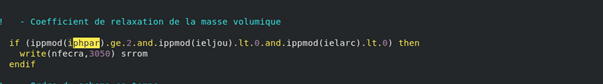 To check why the relaxation coefficient was not written in V7, I found it is suspicious in the following part, the relaxation coefficient will be output on condition ippmod(iphpar).ge.2 as I highlight in the snippet 1 (/base/impini.f90). However, as you can see from snippet 2(/pprt/ppincl.f90), it can only be switched on for the specific physics plus radiative transfer problems.