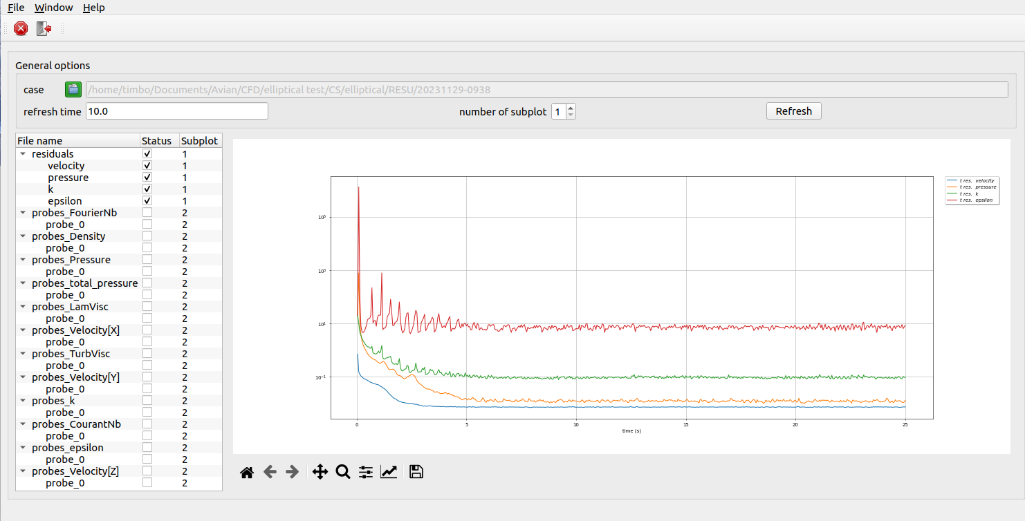 Hi there, I've tried it with kε, kωSST and with rough (height 0.0001m) and smooth walls. All do seem to converge for me within the 500 steps of 0.05s. Here's the plot of kε with a smooth wall: