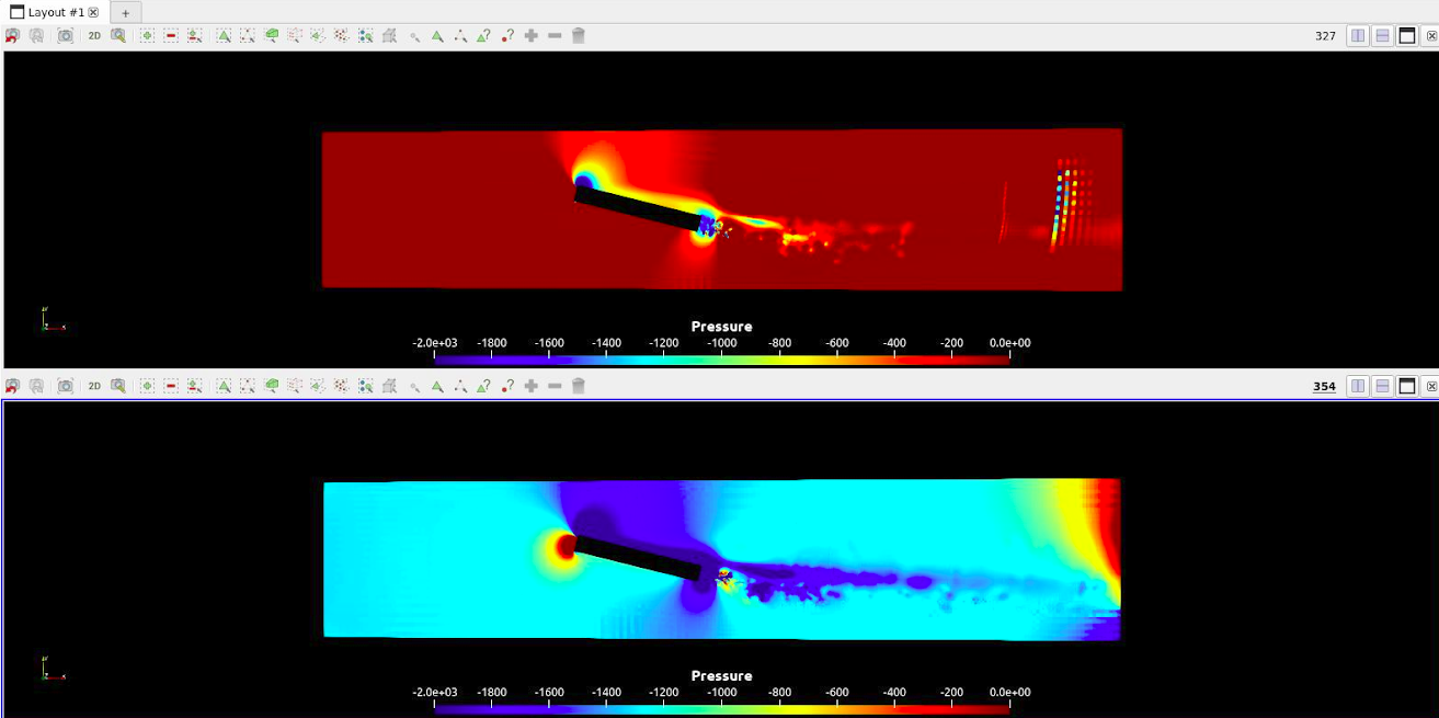 As I mentioned in some other posts, I am simulating the flow around ground vehicle models in a wind tunnel using version 8.0. After many runs and analyses, I managed to match the numerical results with the experimental data (https://ntrs.nasa.gov/citations/20010038028); however, upon visually inspecting the solution, I notice the presence of checkerboards in the pressure field (see image 1). It's a vehicle similar to the Ahmed body with a 14° yaw angle; the image corresponds to a top view of the midplane. Flow is from left to right.