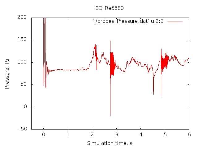 The simulation I am carrying out is a flow in an array of cylinders. It is at Re=5680 using LES. I do have checked with V2F turbulence model in 2D configuration as well, I still observe the spikes.