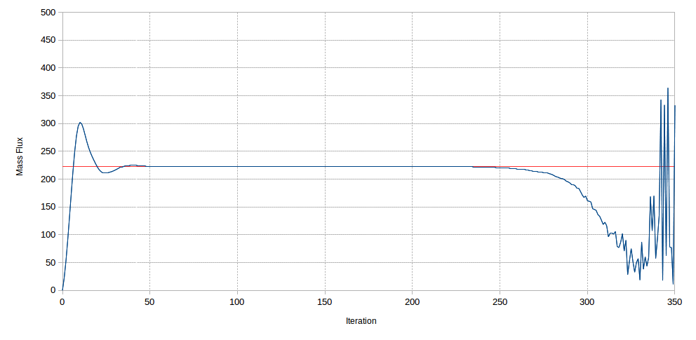 I am having some troubles in running a simulation on a periodic domain. To drive the flow and to keep the flow rate at a constant value, I tried to adapt a subroutine written by Yvan Fournier I found in an old post (http://code-saturne.org/forum/viewtopic.php?f=2&t=1327). I have not had much success so far: although the mass flux reaches the desired value rather quickly, and is kept nicely steady for a while, at some point it starts to decrease, before going into pieces. The simulation goes on for another few iterations, oscillating wildly until it crashes. I am attaching my version of the subroutine: does anyone find any mistake in it, or has any idea about the reason of this behaviour?