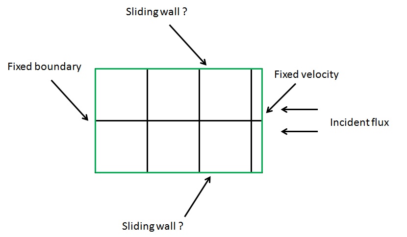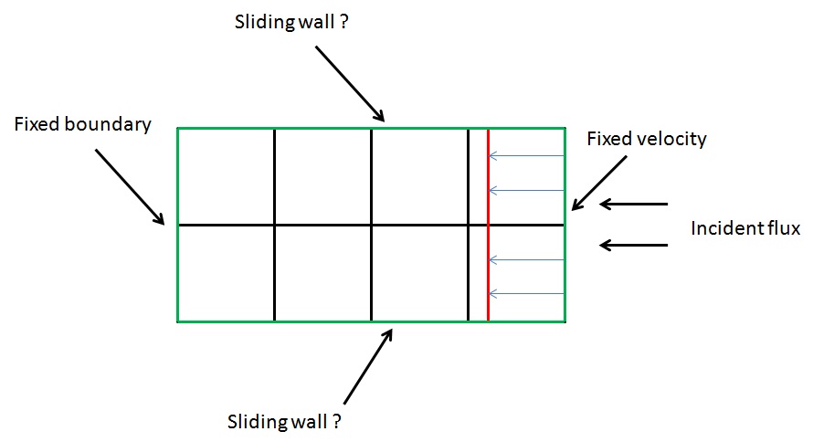For my exemple, those boundary condition can be good? Boundary faces are in green, incident flux coming from the right (so pyrolysis will happens on the boundary condition on the right). I want to move the boundary face from green to red line. (it can be non homogeneous but I see in usalcl.f90 how to modify that)