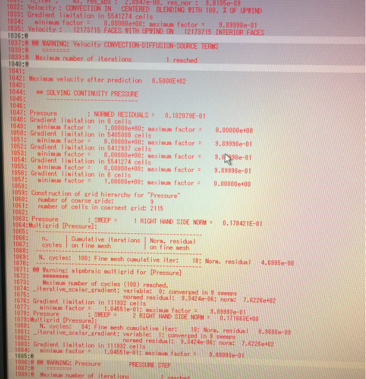 I don't know how it happen that the number of iterative and residual haven't reach the set value when I use saturne3.0. The set value of iterative and residual are 10000 and E-8 respectively.