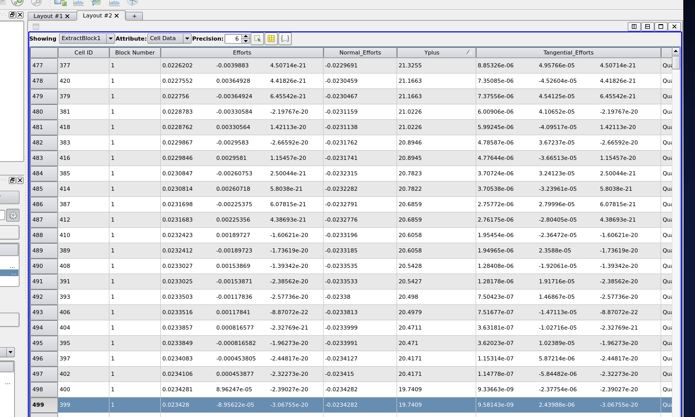 Efforts in spreadsheet view in paraview