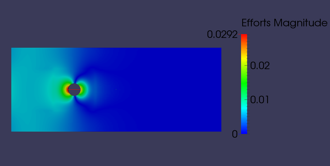 and for the efforts, i just found out that for the flow across cylinder, the efforts are presented in dimensionless vector form and you did say that the efforts are Newton per surface unit right. so to get the shear i need to find the area of the surface unit.