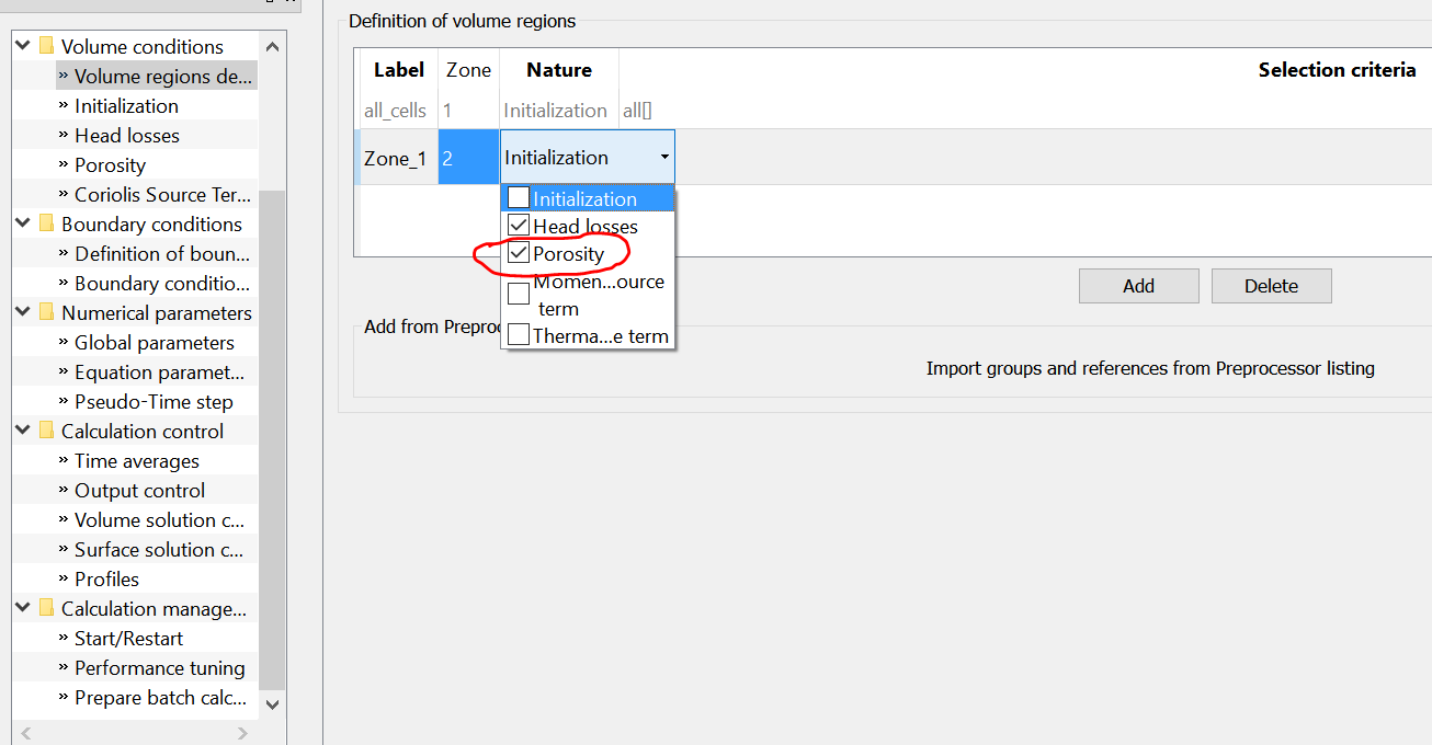 ''The management of the porosity is not yet available in the GUI. To define the porosity, the user must