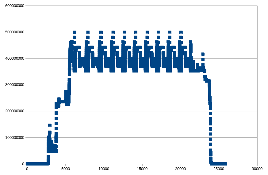 There is no "instrumented" memory which seems to leek, and the instrumented memory usage does not seem to leak (importing your file under a spreadsheet and plotting the memory use over allocations_ I get this (which is good, as you seem memory being allocated and freed in equal amounts at each time step) :