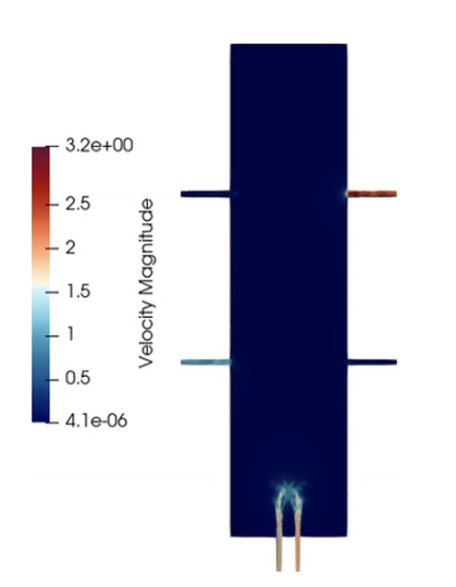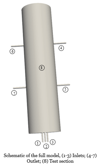 My model has three inlets(1-3) at the bottom and 4 outlets (4-7) (please see the attached image) . Two outlets close to the top(4 and 6) and two somewhere in the middle (5 and 7). If I solved the model by using the outlet boundary condition the solution has the maximum velocity at one of the outlets (outlet4) (please see the attached file). However, the other outlets are at lower velocities (please find the attached file). For that solution, I am trying to apply the imposed pressure outlet condition. The pressure at the bottoms outlet (5 and 7) is assumed to be the atm pressure (let's say (Po) and the pressure at the top two outlets (4 and 6) is assumed to be (Po - hydrostatic pressure). but I am not sure whether this assumption is correct or not.