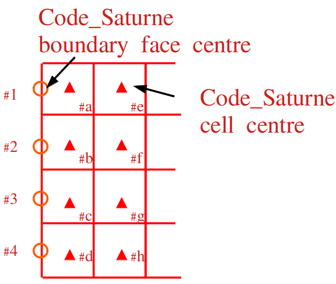 Now, I'd like to achieve cell coupling. Like in the figureImage, Code_Saturne receives corresponding data and place in cell centre (#a, #b ... #h). I found the second term of function (cs_syr_coupling_define) only act on the boundary criteria. I'd like to know how to replace data in Code_Saturne cells.