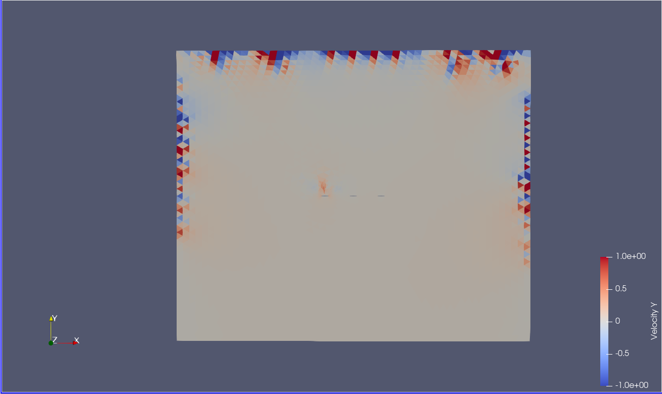 Here is the screenshot at iteration 700, we can see the plume which has formed at the left heating bar (others have been deactivated), and the instability occuring at the boundaries.