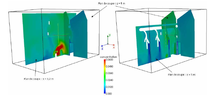 point of a ventilated room is important, in order to ensure protection of operators and supervision of workspaces. Thus, in the scope of a thesis work a model of aerosol transport and deposition has been developed as part of a project started with IRSN , EDF and IMFT.